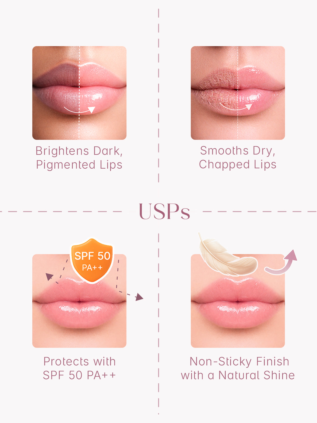 Formulated with SPF 50 PA++ sun protection to shield lips from harmful UV rays.