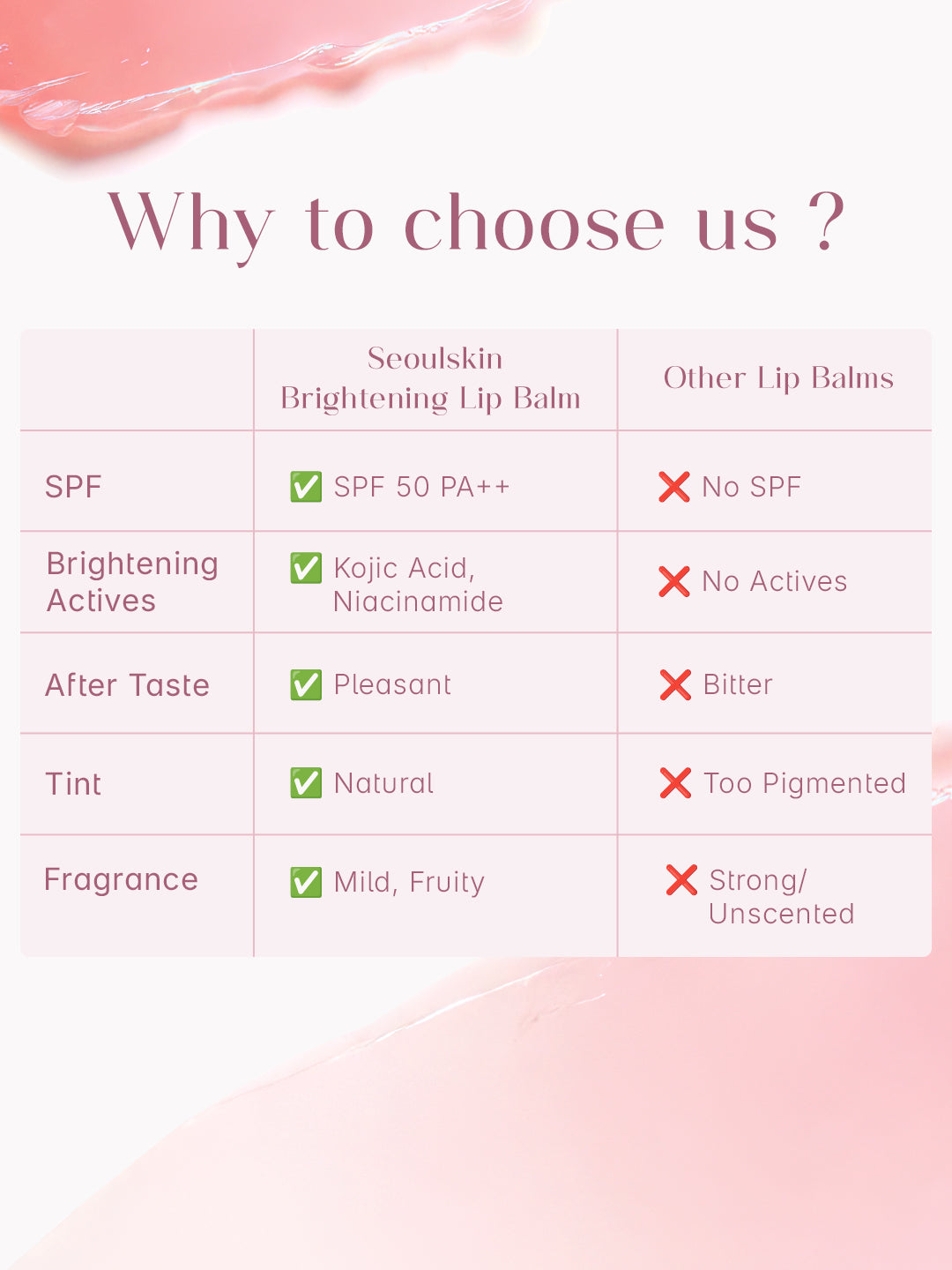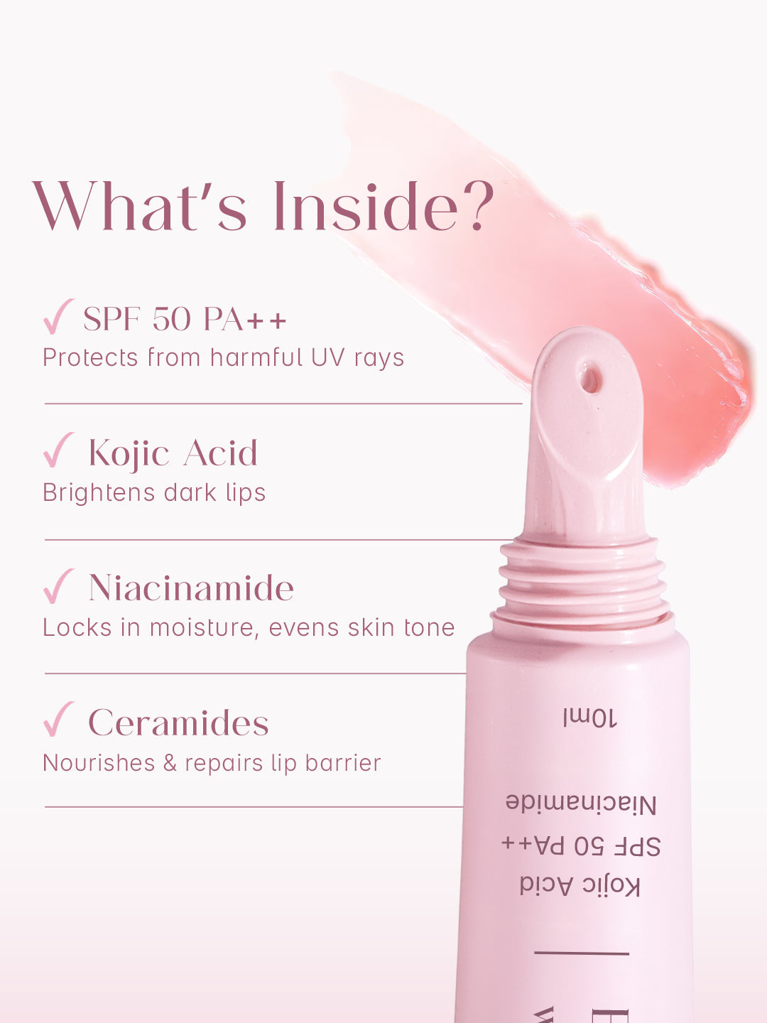 Brightens dark lips and helps reduce lip pigmentation with Kojic Acid and Niacinamide.