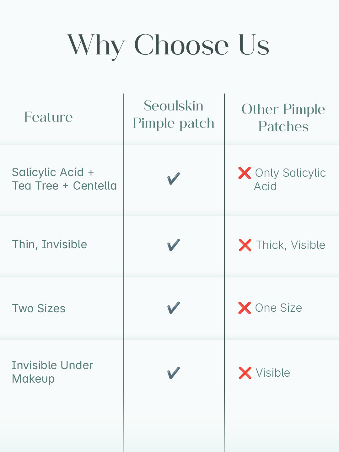 The SeoulSkin Salicylic Acid Pimple Patches offer a simple, gentle, and effective way to care for sudden breakouts. Made with transparent hydrocolloid, each Korean pimple patch helps draw out impurities, absorb excess oil, and shield active pimples from dirt, pollution, and repeated touching.